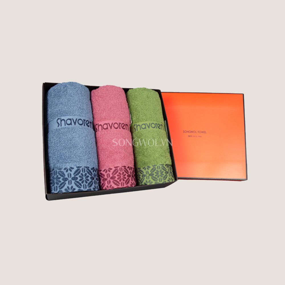 Khăn quà tặng sợi cotton SH CRYSTAL – Hộp 3 khăn mặt 40x80cm