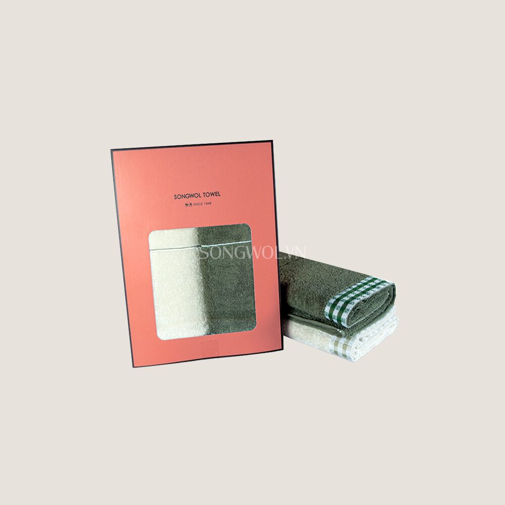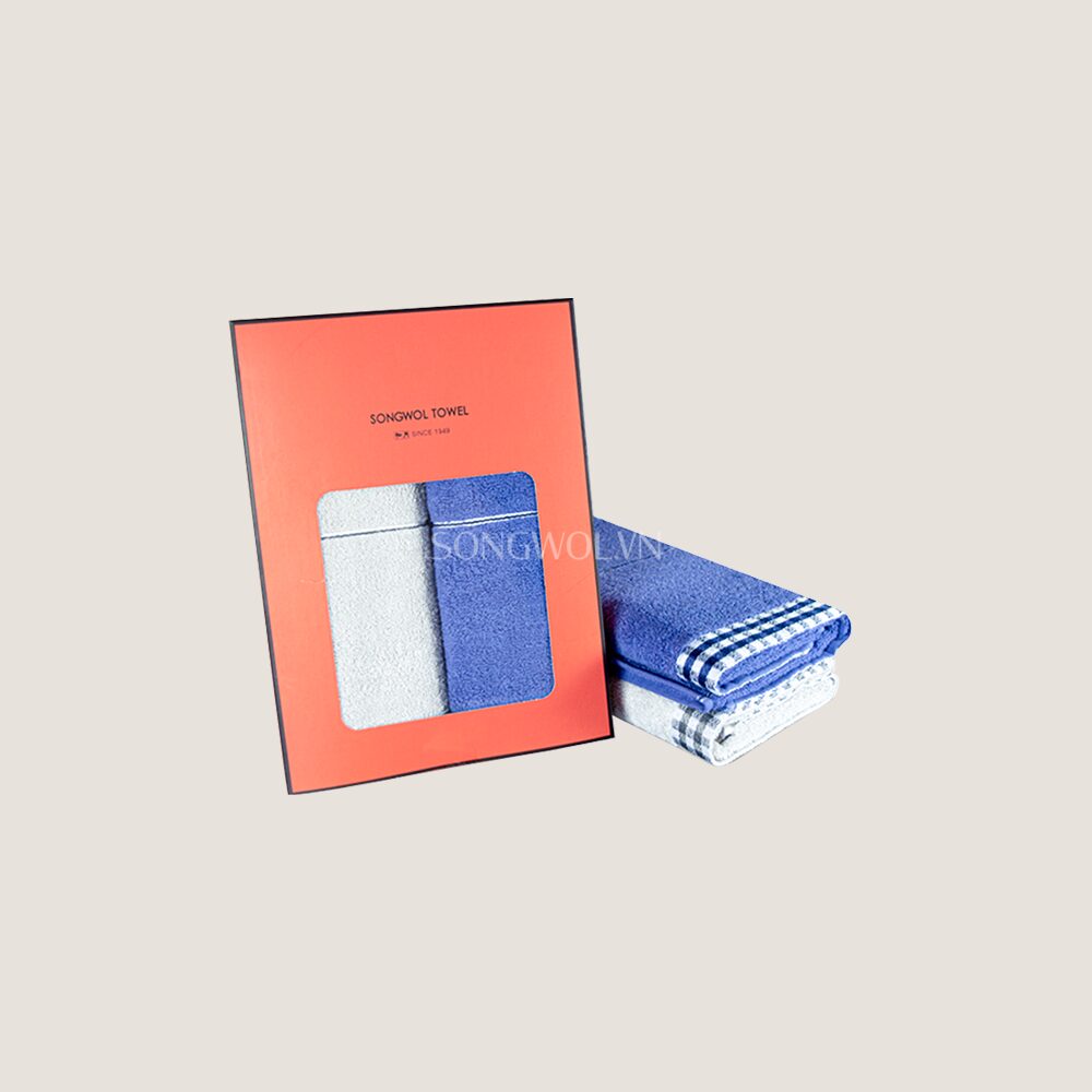 Khăn quà tặng cotton LINE CHECK – Hộp 2 khăn mặt 40x78cm